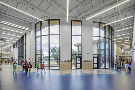 Bar W Elementary school, is a new two-story educational facility in Leander, Texas, located on land previously owned by the Bar W family ranch. This 128,000 square-foot campus is home to more than 600 Pre-K to 5th-grade students, faculty, and staff. The school features two floors of teachable spaces, a cafeteria, gym, two playgrounds, spacious courtyard, retention pond, collaborative areas, outdoor learning spaces and so much more.